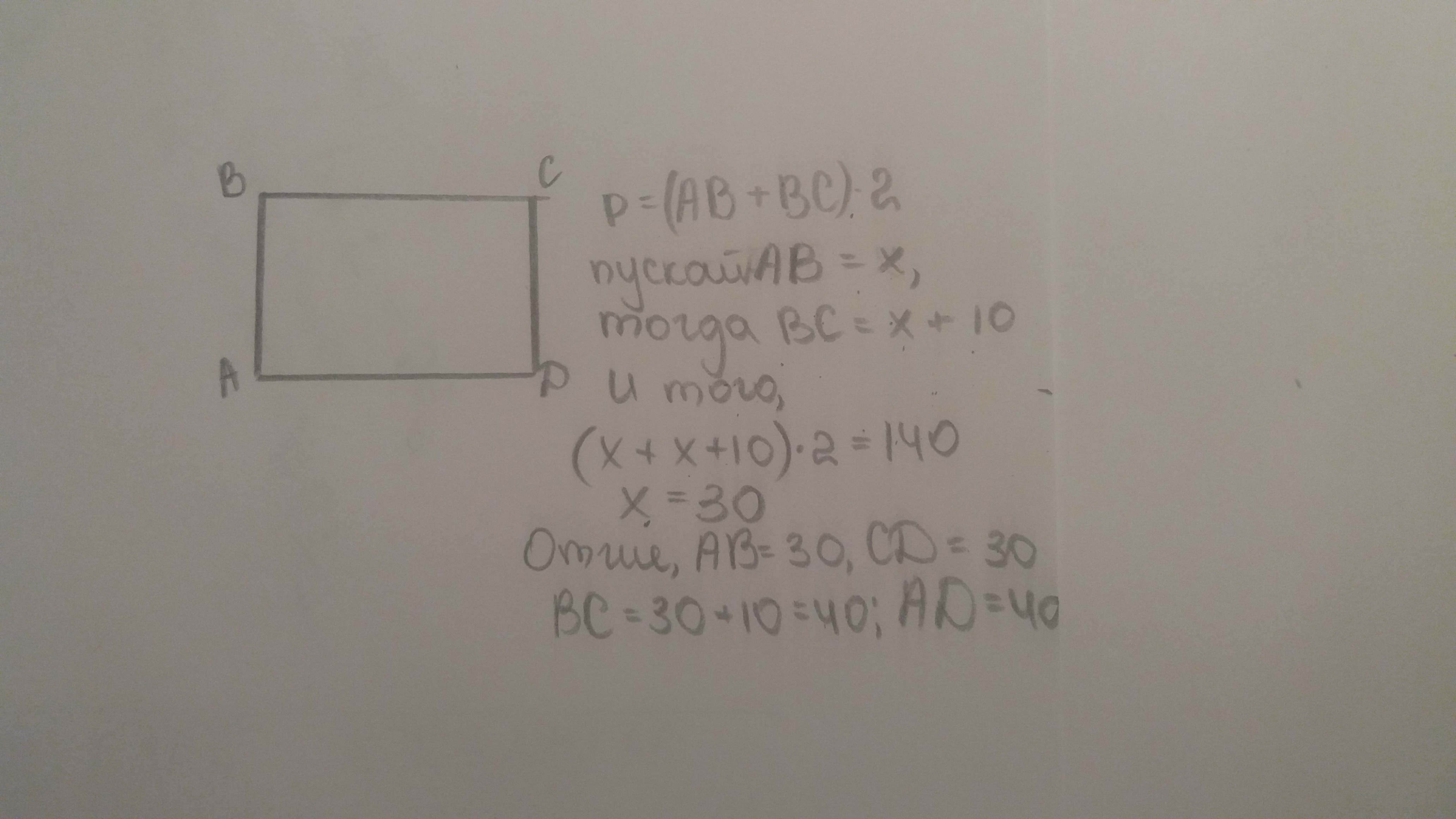 Периметр прямокутника дорівнює 140м його довжина на 10м більша за ширину.знайдіть сторони прямокутника.