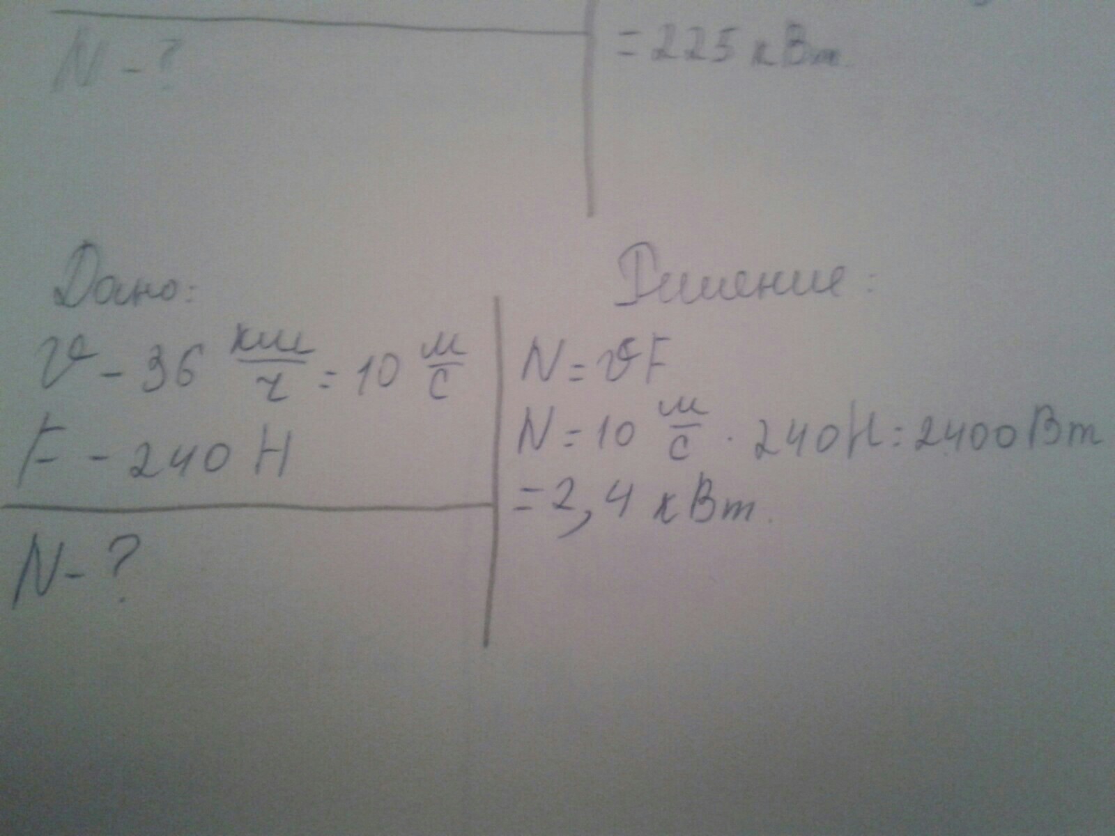 Скутер движется со скоростью 36км/ч. Какова мощность двигателя скутера если сила тяги составляет 240 Н?