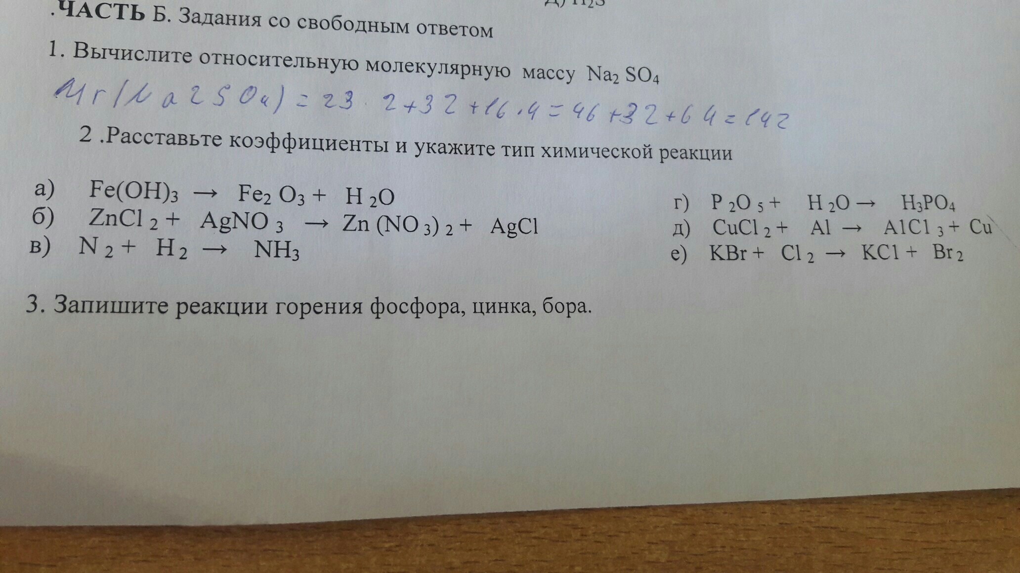 расставте коэфиценты и укажите тип реакции