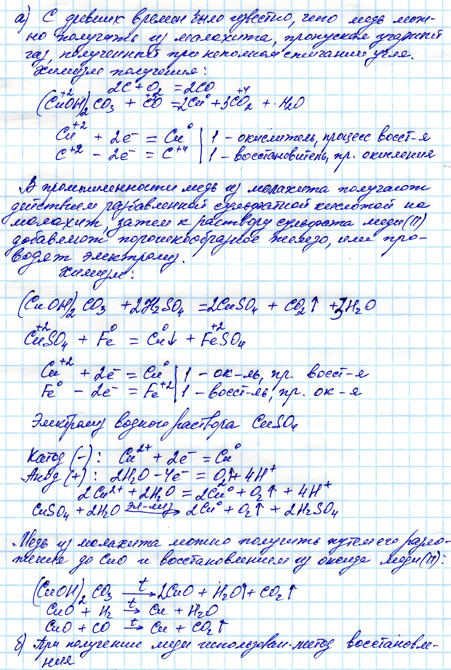 б)Какой из способов получения металлов из руд был использован при получение меди из малахита?