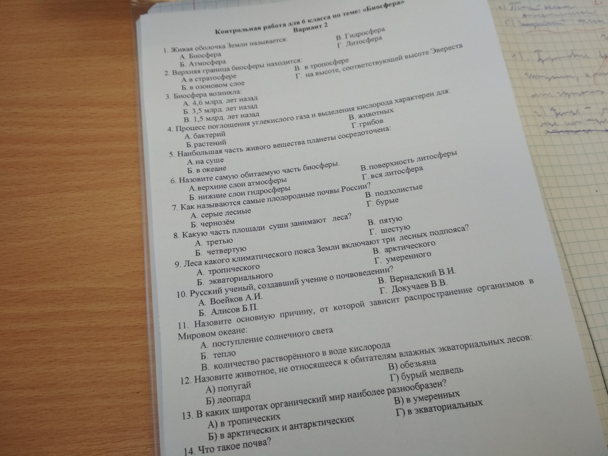 В первом а) вообще-то, стоит логически научиться думать, потому что дальше идут вопросы про биосферу