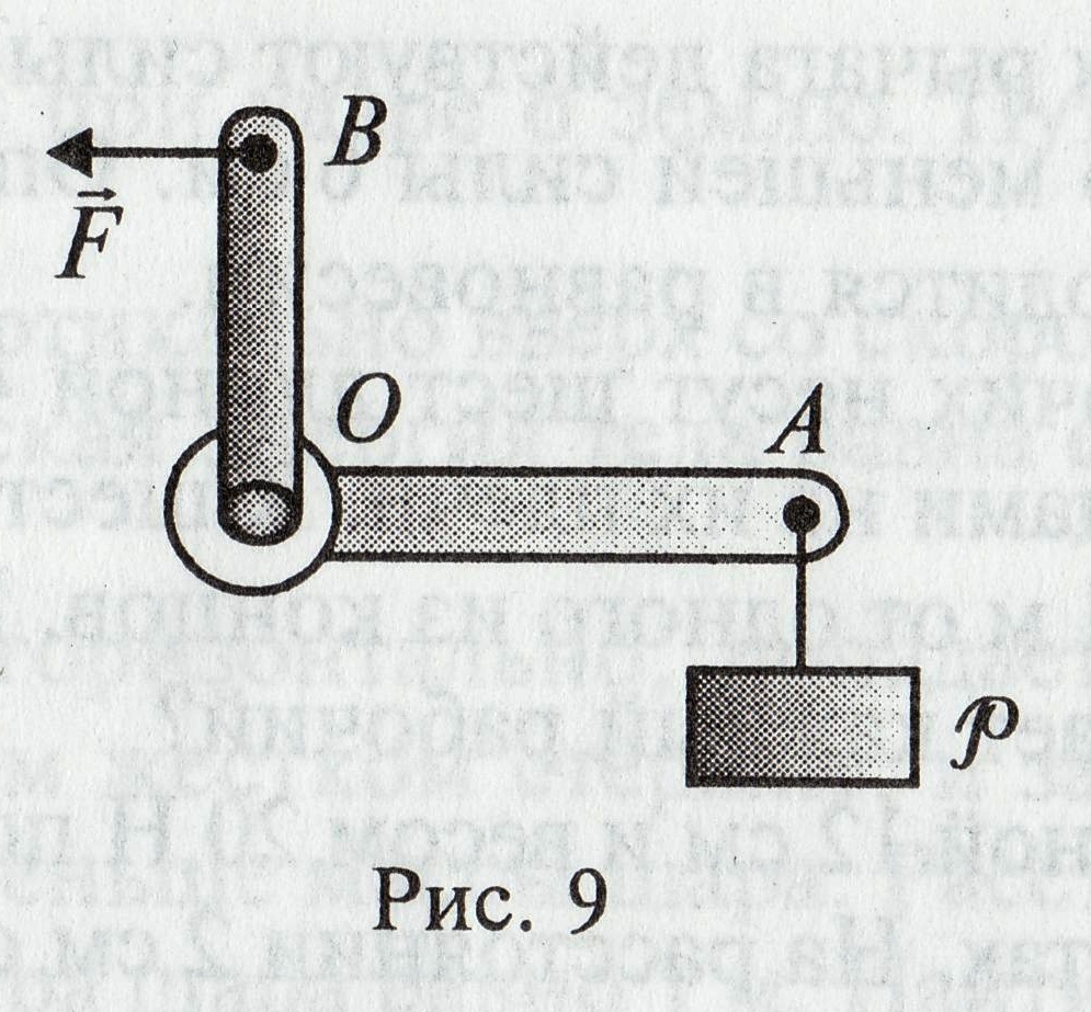 Помогите пожалуйста, очень прошу, срочно: Груз весом 100Н удерживается в равновесии на коленчатом рычаге силой F (рис 9). Найти F, если АО = 20см, ОВ = 50см.(Ответ: 40Н), можно просто формулами