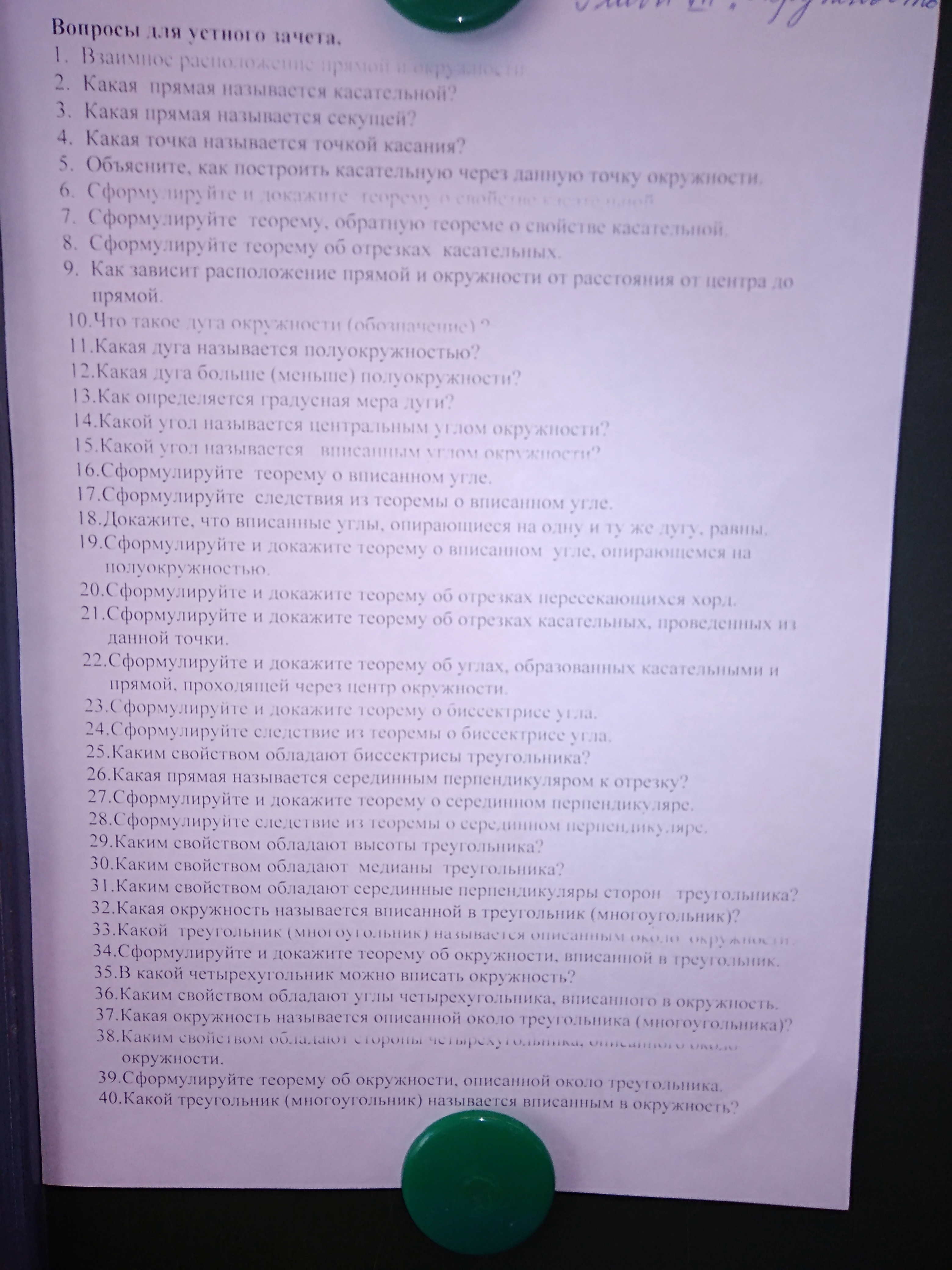 15. Это угол, вершина которого лежит на окружности, а обе стороны пересекают эту окружность.