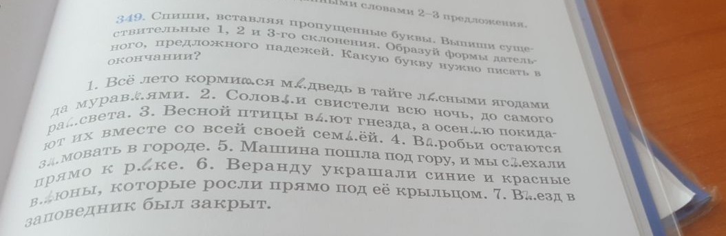 спиши. вставляя пропущенные буквы . выпиши существительные 1,2 и 3 скланения . образцы формы дательного, предложного падижей. Какую букву нужно писать на конце.