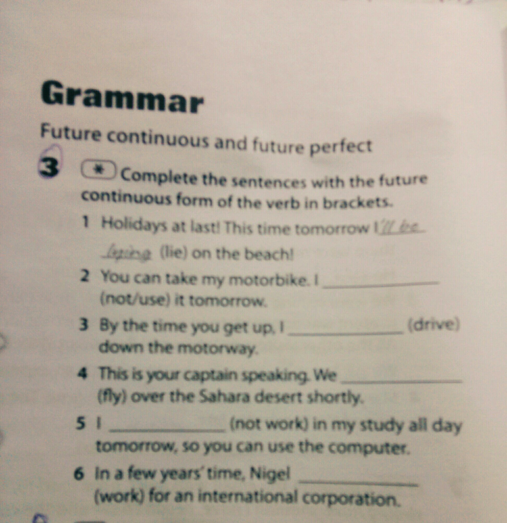 2 won’t be using 3 will be driving 4 will be flying 5 won’t be working 6 will be working