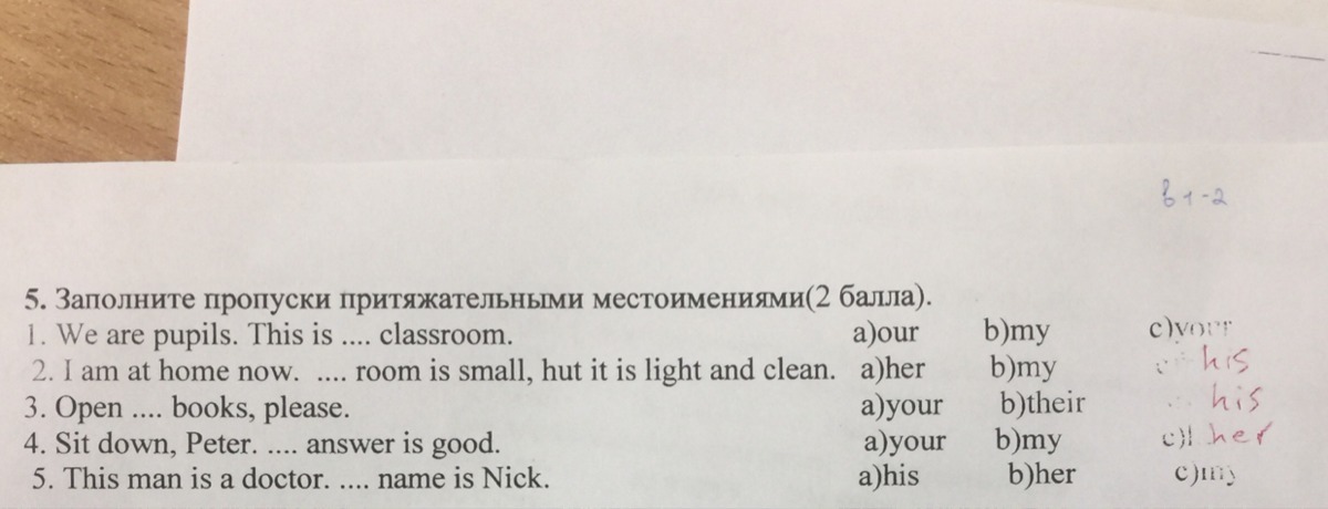 1. а) our