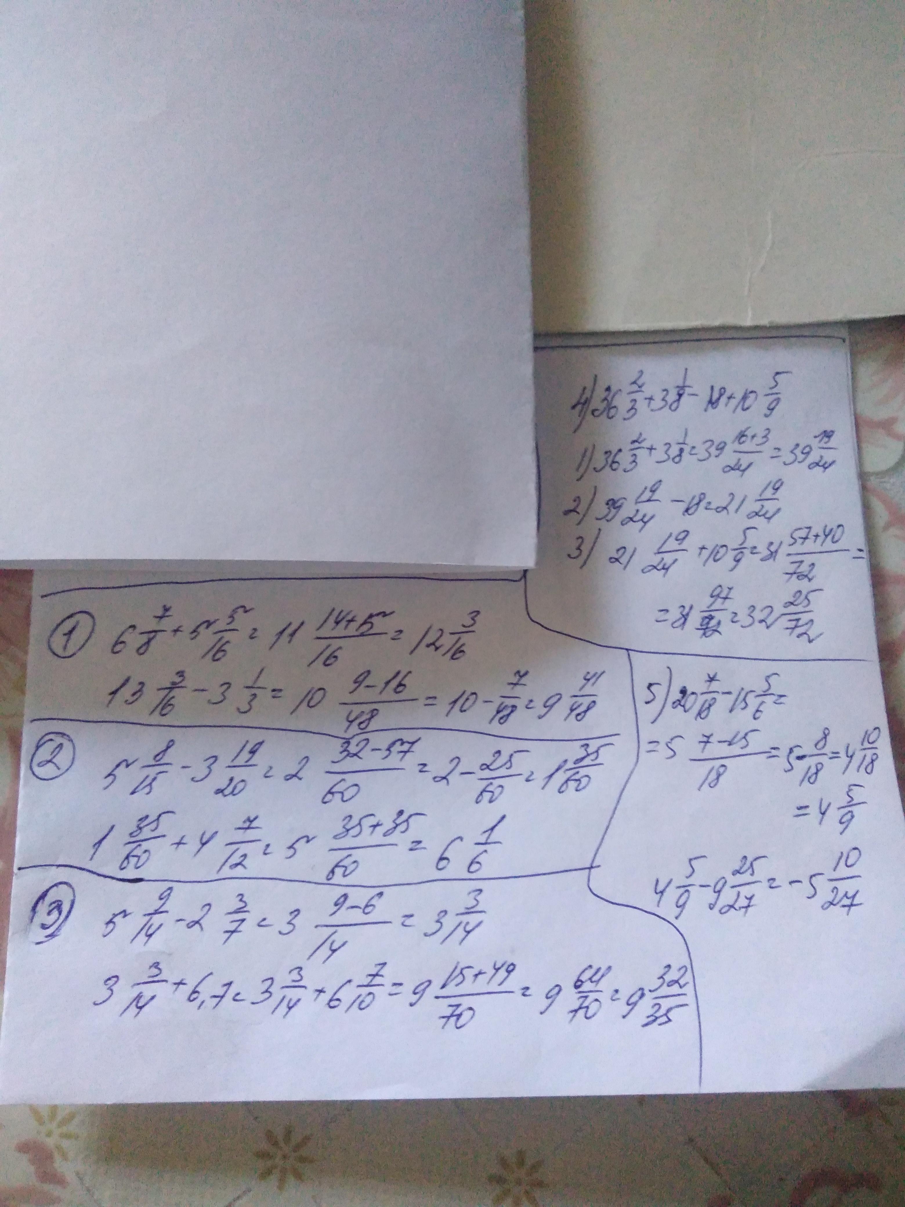 4) ( 36 2/3 + 3 1/8) - (18 - 10 5/9)