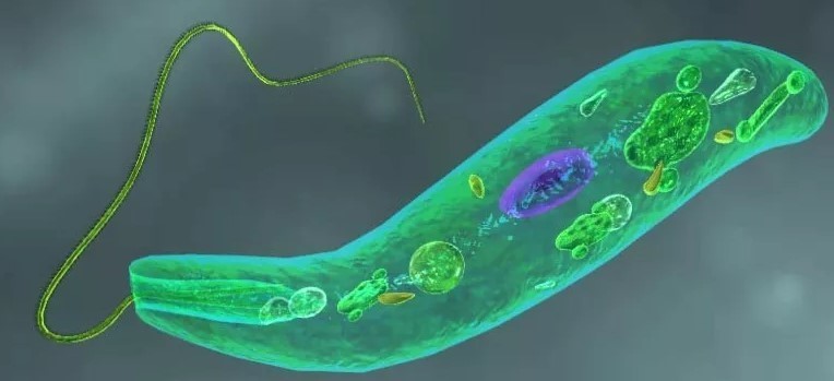 Эвглена зеленая - организм являющийся миксотрофом по типу питания, то есть способный как синтезировать органические вещества самостоятельно, так и потреблять уже готовые. Наличие в цитоплазме хлоропластов, а следовательно способность к фотосинтезу на свету роднит ее с растениями. Однако оказавшись в неосвещенных условиях эвглена начинает потреблять готовые питательные вещества растворенные в воде, что делает ее родственницей животных. Так же одной из черт принадлежащих животным является наличие в ее цитоплазме зерен гликогена, вещества являющегося продуктом запаса животных. Органоид движения - жгутик в принципе не позволяет склонить чашу весов ни в сторону растений, ни в торону животных. Так как эти органоиды встречаются в обоих царствах, как, например, у одноклеточной зеленой водоросли хламидомонады их целых два.