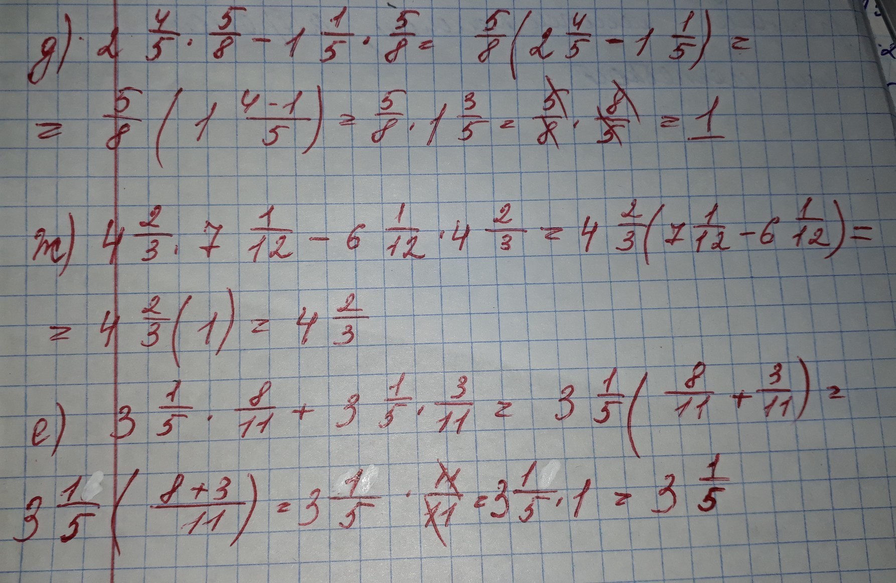 д) 2 4/5 × 5/8 - 1 1/5 × 5/8