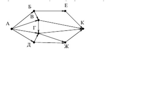 На рисунке – схема дорог, связывающих города А, Б, В, Г, Д, Е, Ж и К. По каждой дороге можно двигаться только в одном направлении, указанном стрелкой. Сколько существует различных путей из города А в город К?