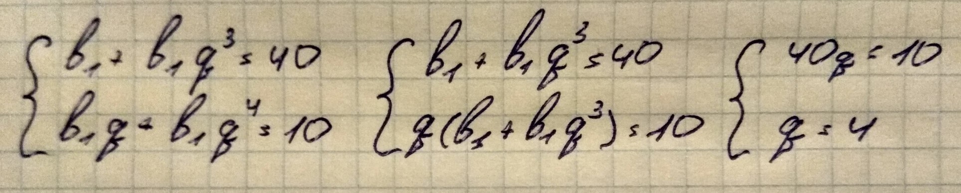 Сумма первого и четвертого членов геометрической прогрессии равна 40, а сумма второго и пятого равна 10. Найти знаменатель прогрессии.