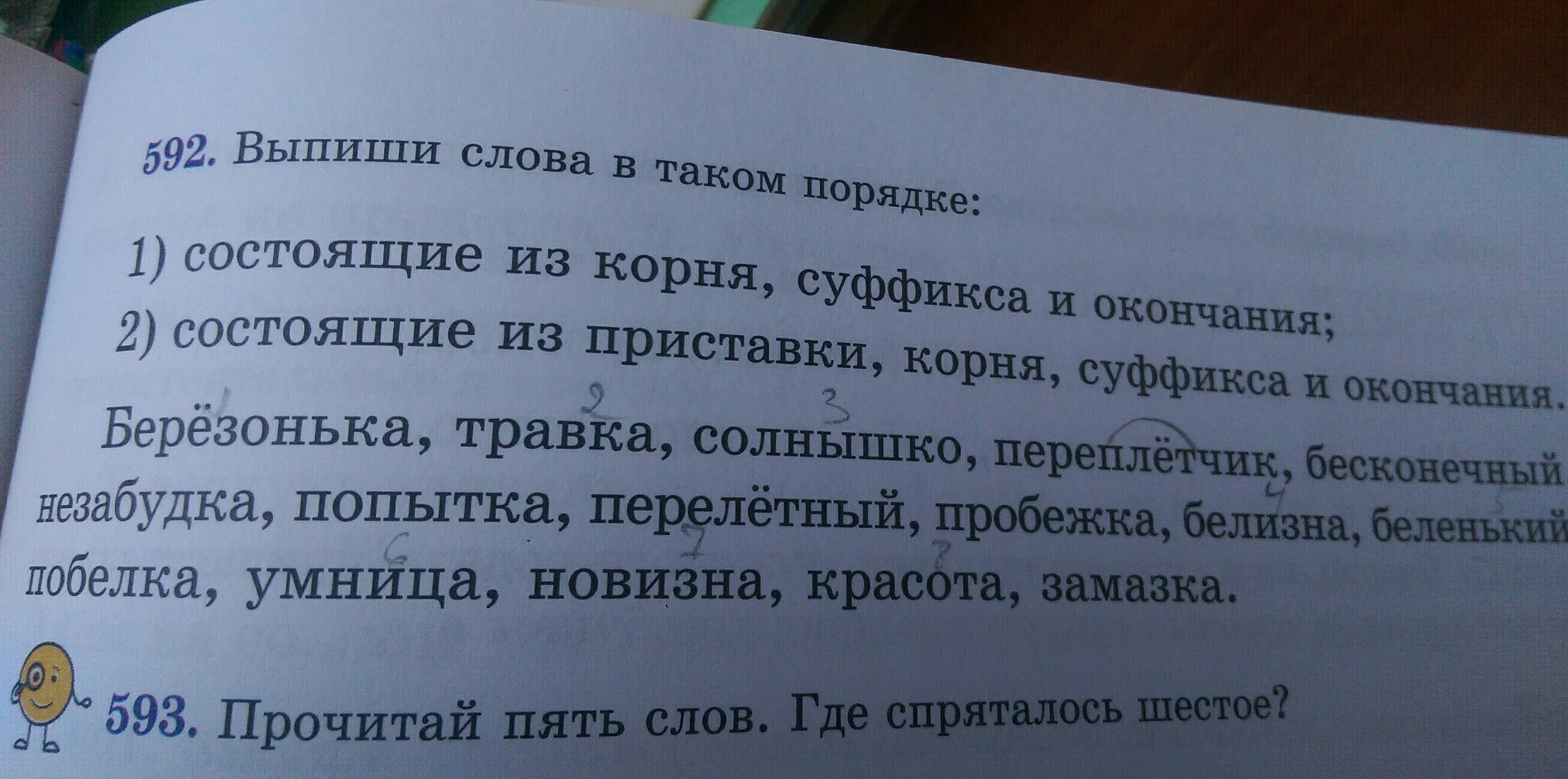 Выпиши слова в таком порядке: 1 )состоящие из корня, суффикса и окончания ;2) состоящие из приставки, корня, суффикса и окончания.