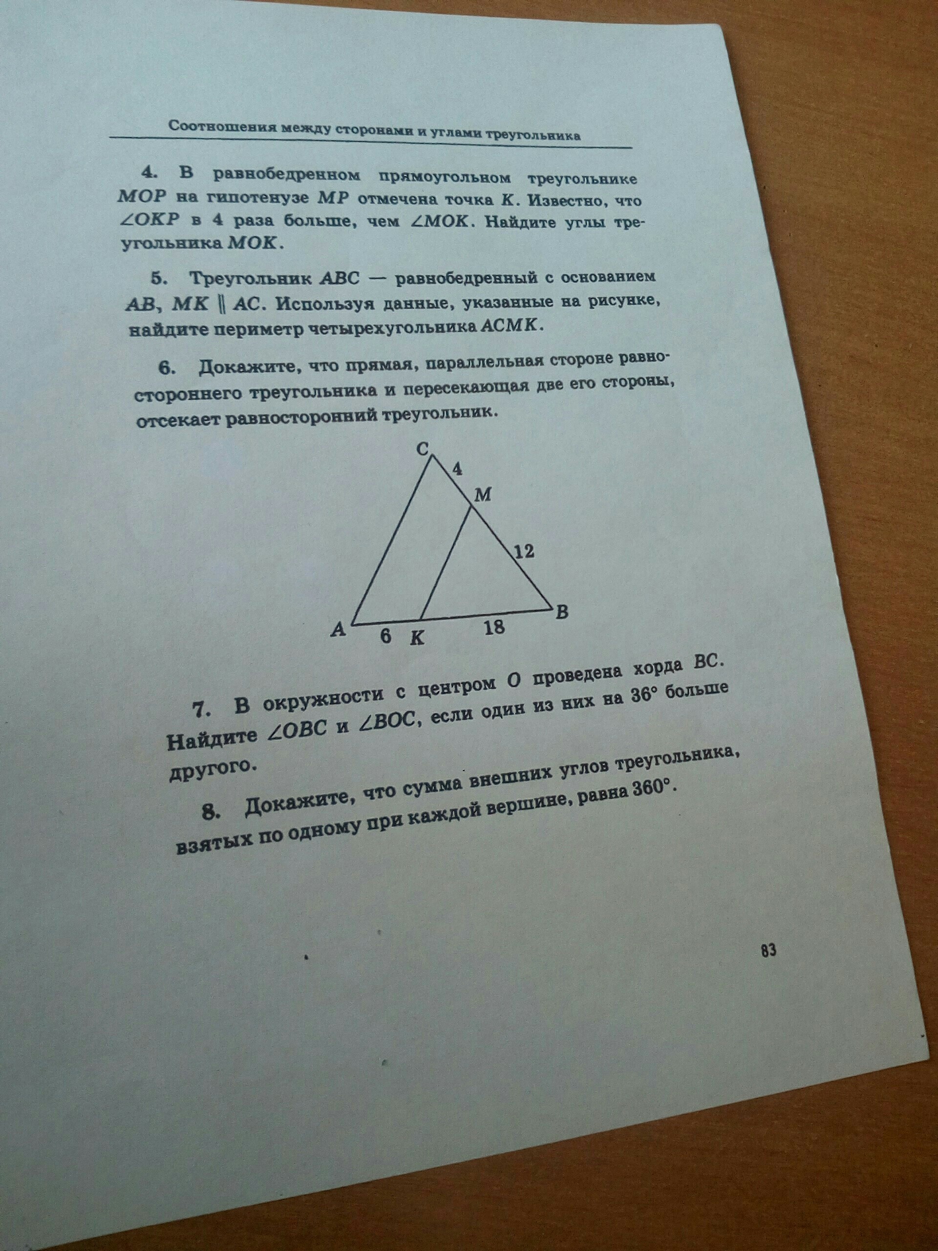4.Тк. тр-к МОР - прям-ый равнобедренный, то <ОМР=45°.
