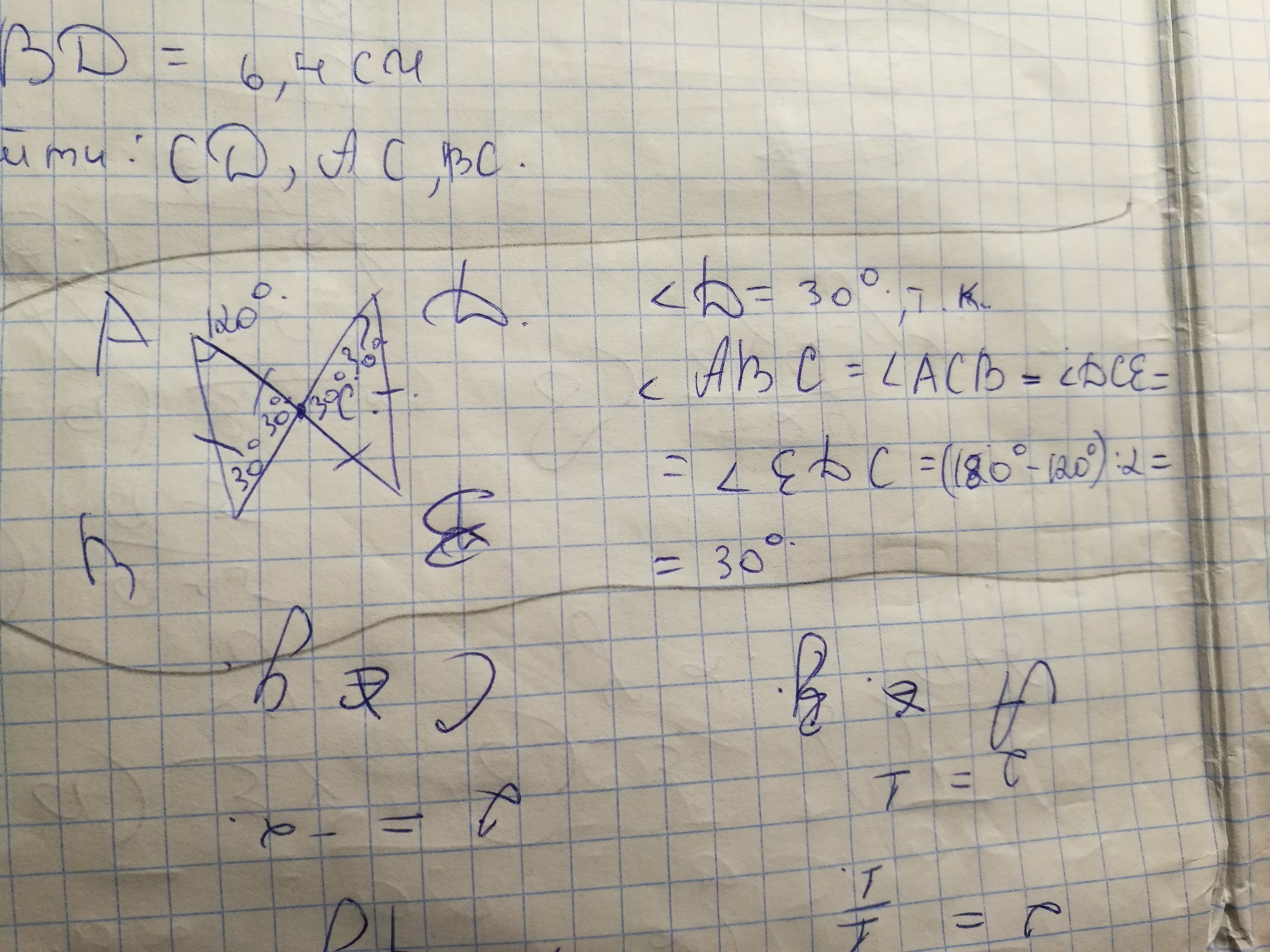 на рисунке AE и BD пересекаются в точке С .Угол BAC=120 градусов ,AB=AC,CE=ED.Найдите градусную меру угла CDE.