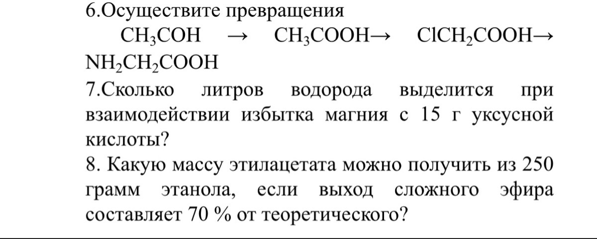 7) M(CH3COOH)=60 n(CH3COOH)=m/M=15/60=0,25 моль
