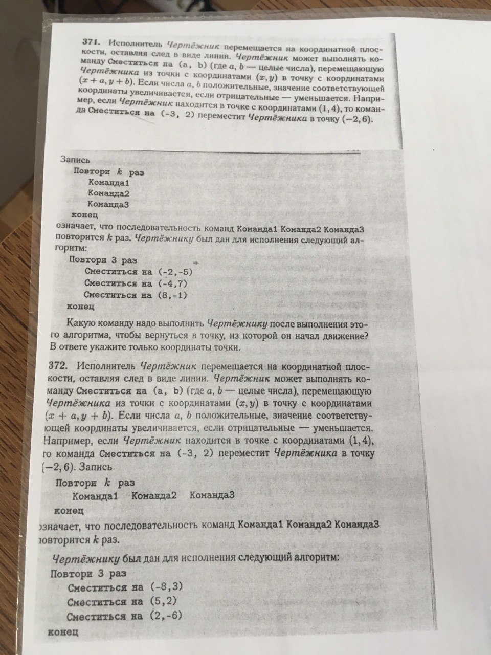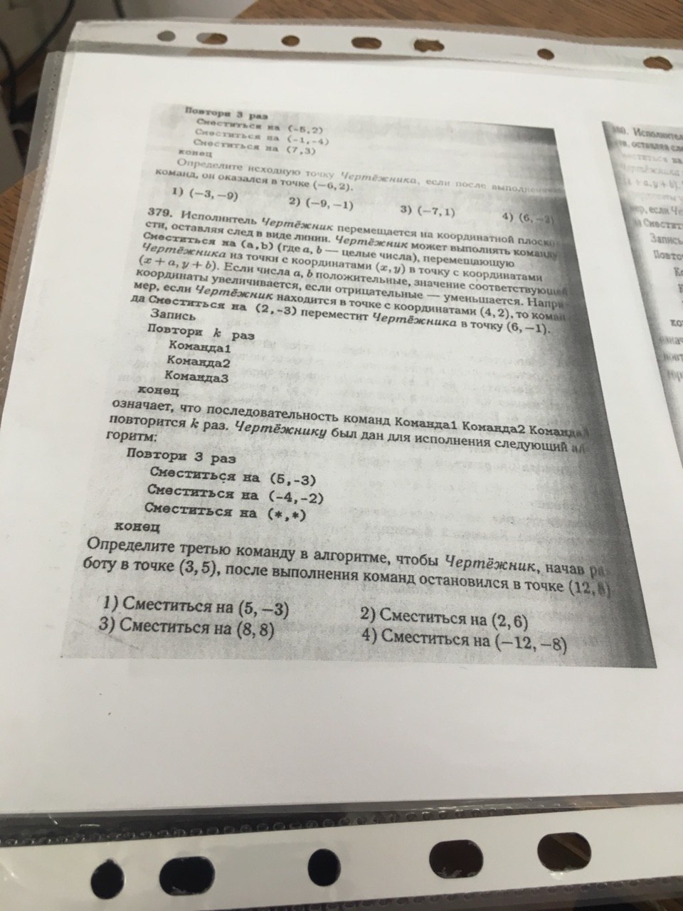 После выполнения алгоритма, Чертёжник будет в точке (6, 3), чтобы сместиться в точку (0, 0), нужно ввести команду - Сместиться на (-6, -3)