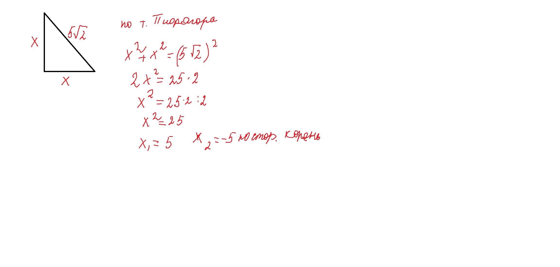 Вычислите катет равнобедренного прямоугольного треугольника если гипотенуза равна 5 в корне из 2