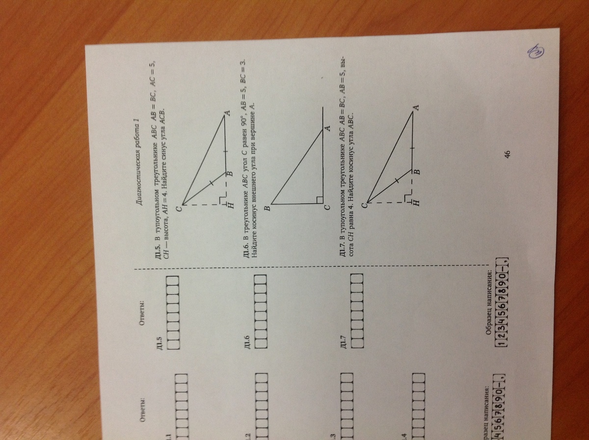 1.6 Внешний угол п ри А равен (180 - А), косинус внешнего угла равен cos(180 - A)= - cosA= - AC:AB = - 4/5