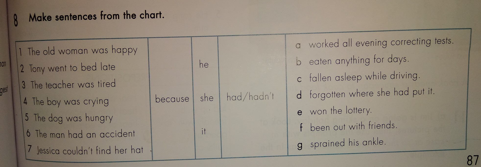 3)The teacher was tired beacuse he/she had worked all evening correcting tests