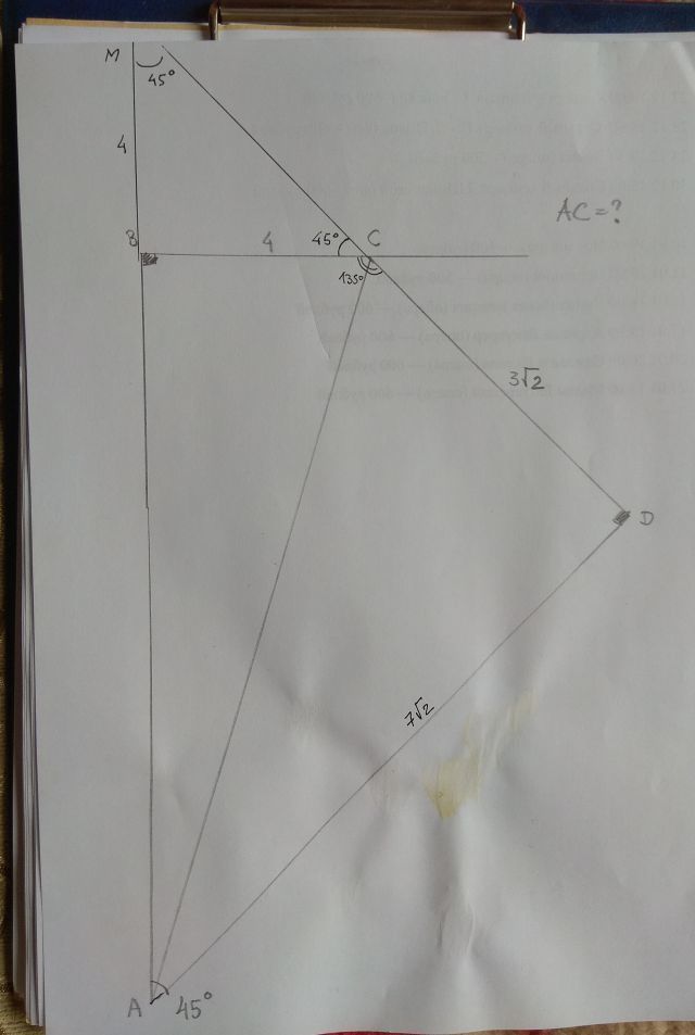 по теореме Пифагора МС = √(4^2 +4^2) =4√2