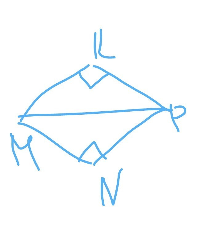 МР - общая сторона у треугольников. Так как углы К и N равны по 90 градусов, то МР является гипотенузой для каждого треугольника.
