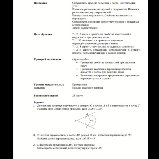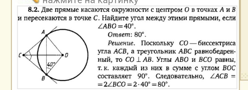Две прямые касаются окружности с центром О в точках А и В и пересекаются в точке С. Найдите угол между этими прямыми, если ∠OAB= 45 градусов