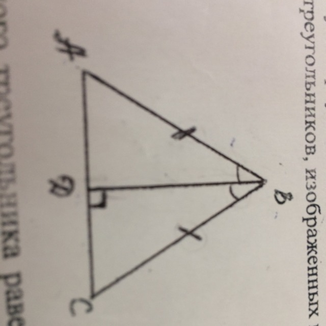 т.к. треугольник АBC равнобедренный => AB=BC т.к. BD является и биссектриссой и медианой значит делит сторону AC пополам => AD=DC,а сторона BD является общей
