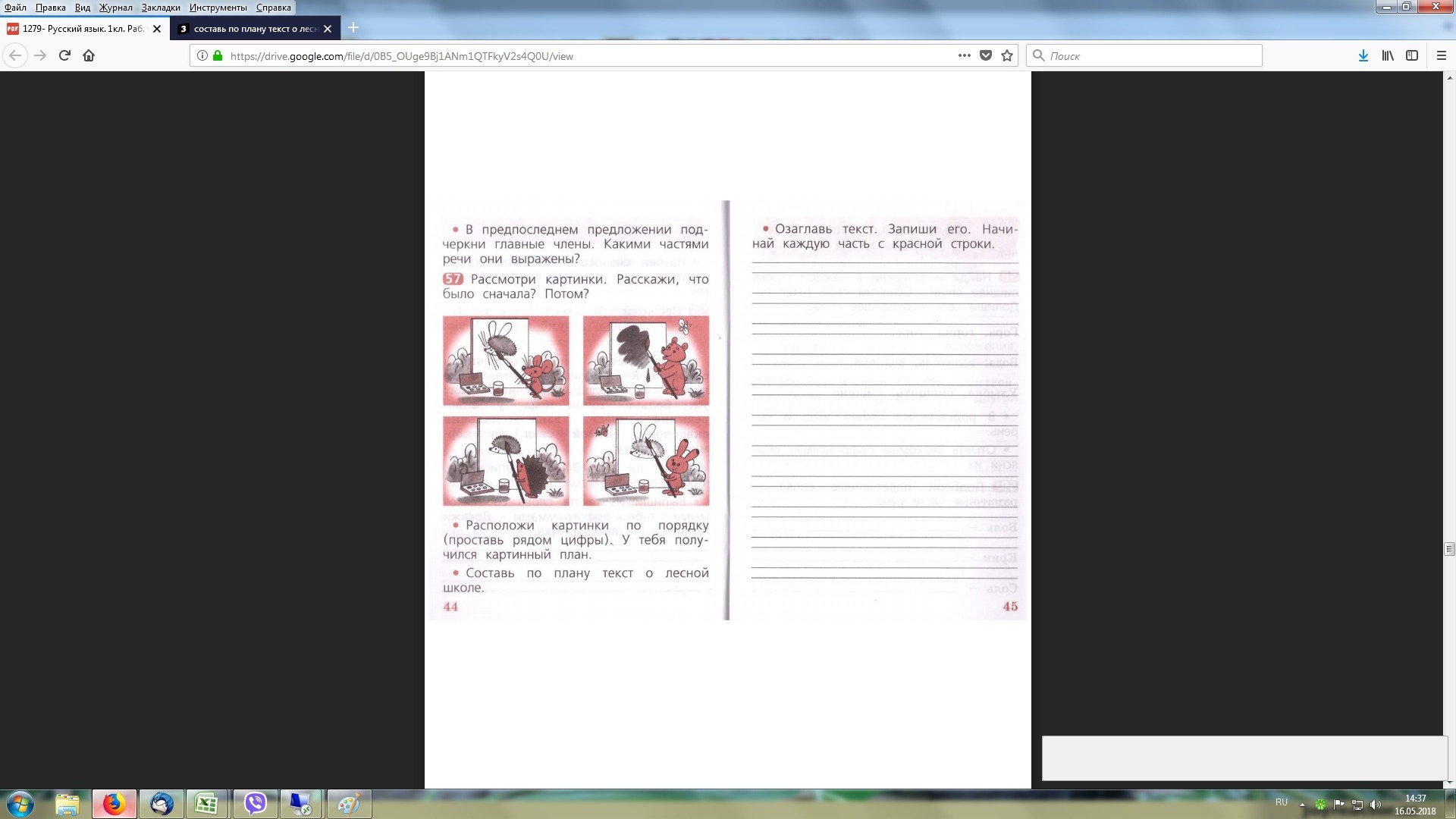 И вот на урок рисования собрались звери. И учитель сказал нарисовать ёжика. первым приступил мышонок. Он нарисовал похожего ёжика, только с усами, да с ушками. Следующий, пошёл медведь, он сильно старался, но у него к сожалению ничего не получилось. И тут пошёл ёжик и он знал что у него нет ни усов, ни ушей таких больших, и нарисовал, так как есть. Учитель похвалил его и ёжик сел за парту. Ну и последним пошёл зайчонок. Он рисовал, и смотрел на его друга, ёжика, который любуются своей картиной. Наконец он нарисовал, ёжик получился с заячьими ушками, но без усов. Учитель встал рядом с зайчонком и сказал: "Ребята, если сказано нарисовать ёжика, то надо именно его рисовать." Потом он продолжил и сказал " Вы же видите вашего друга?" Все повернулись на ёжика и сказали хором "Да". "Так вот" говорит учитель "Он же без таких больших ушей, без таких длинных усов!" все ответили " Да!" и тут говорит зайчик " Я понял, понял! Мы усвоили урок! Ведь правда ребята?" Немного задумавшись класс сказал хором " Конечно!". "Вот и славно!" Сказал учитель " Вы сегодня хорошие нарисовали картины! Идите на следующий урок!" Немного подождав звонка, ребята вышли из класса и пошли на следующий урок!