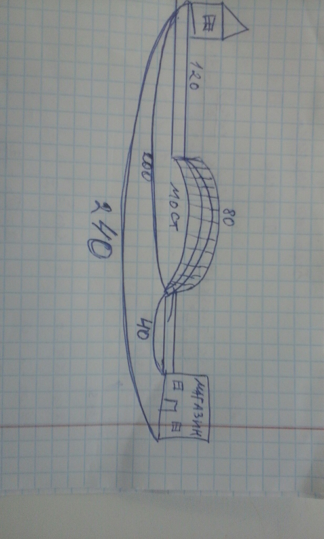 если идти по прямой то от дома до моста 120 шагов,длина моста 80 шагов ,а от дома до магазина 240 шагов. сделай схематический чертёж и узнай каким может быть расстояние от магазина до моста ,если дом ,мост и магазин находятся на одной улице. заранее спасибо