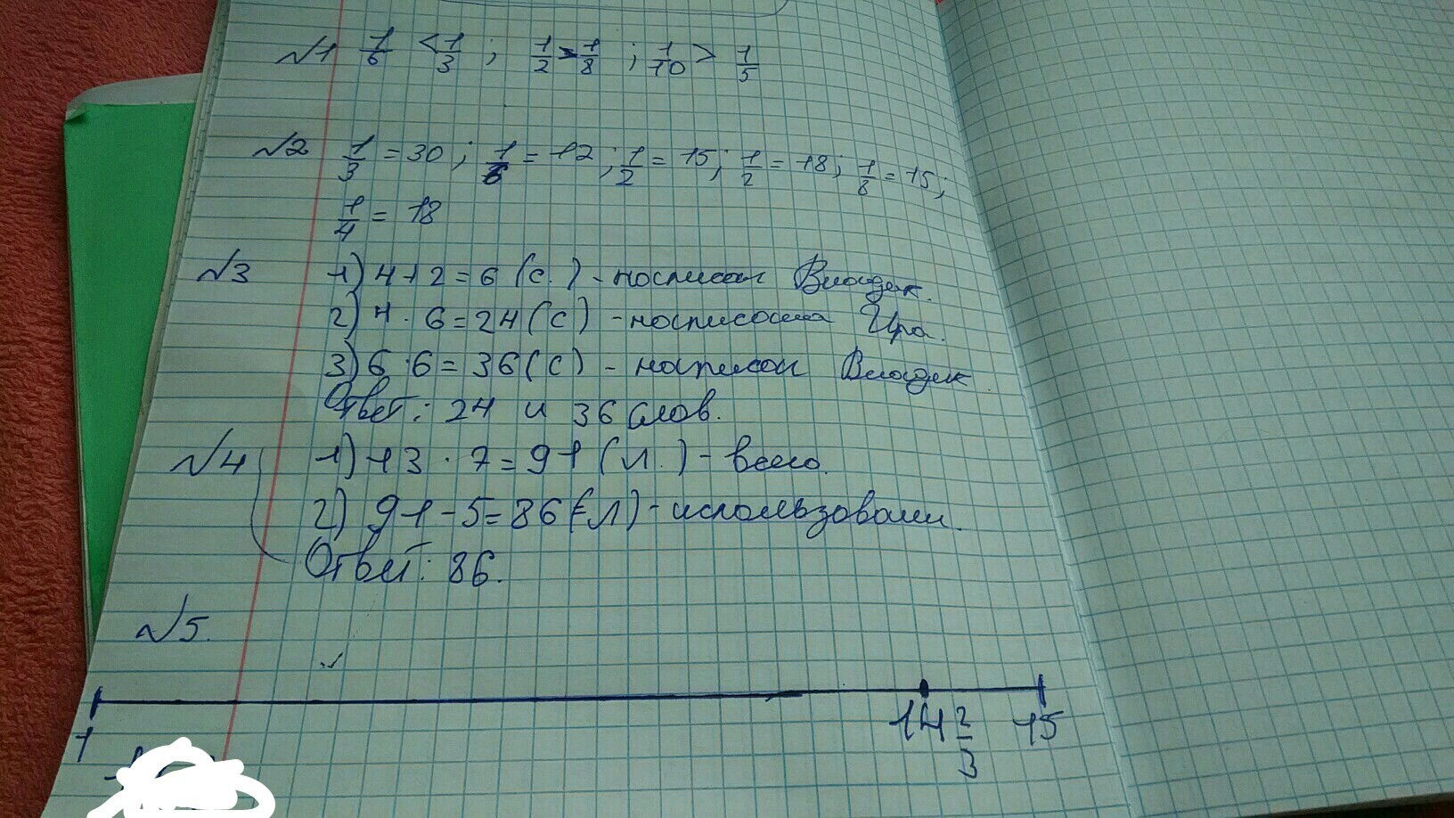 4) сделай рисунки долей и сравни числа: 1/6 .... 1/3, 1/2...1/8, 1/10...1/5