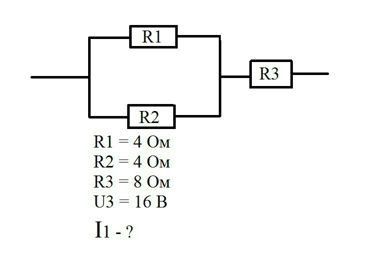 На схеме показано сопротивление проводников. Найдите силу току первого проводника.