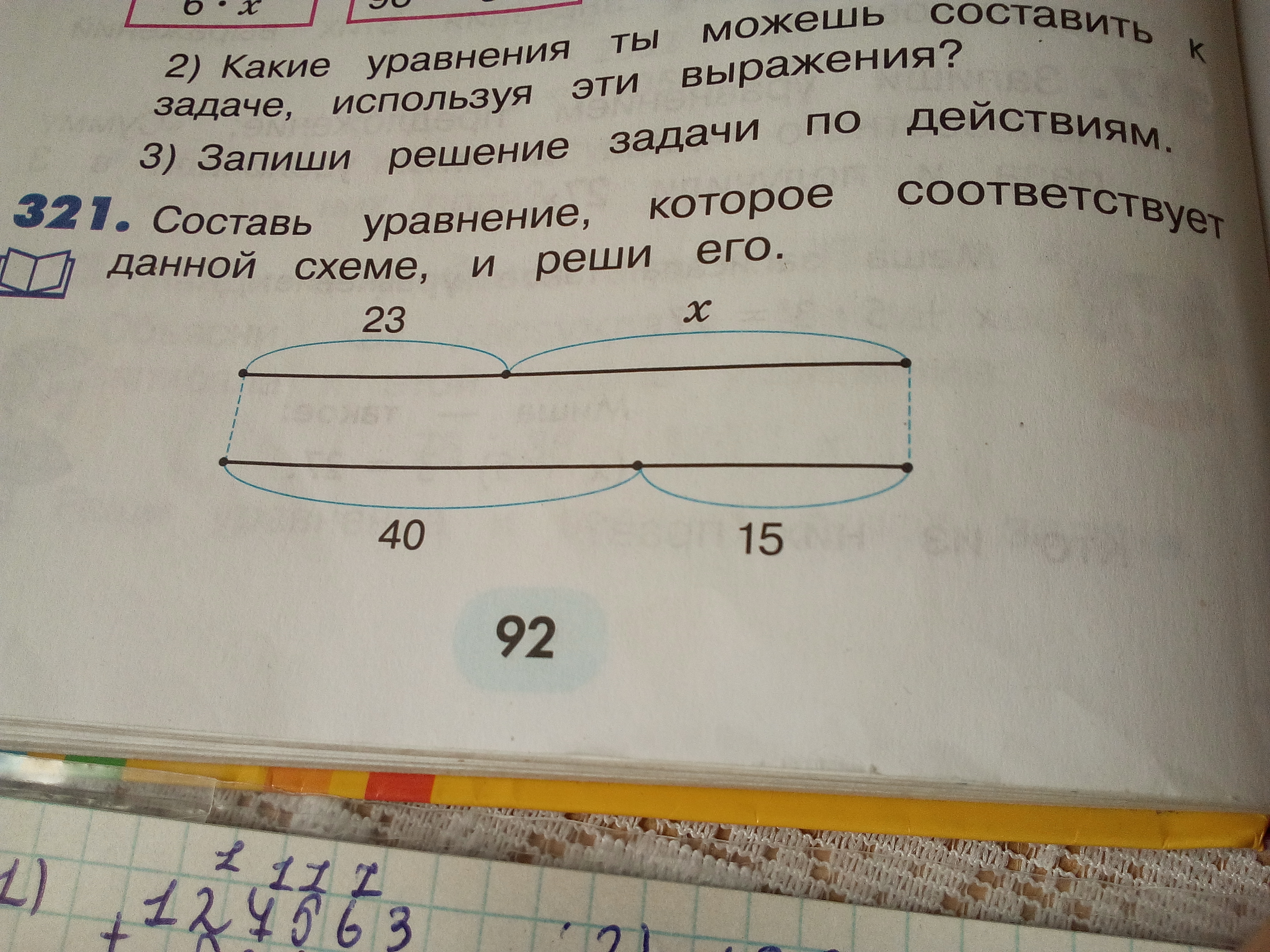 x = 40 + 15 - 23
