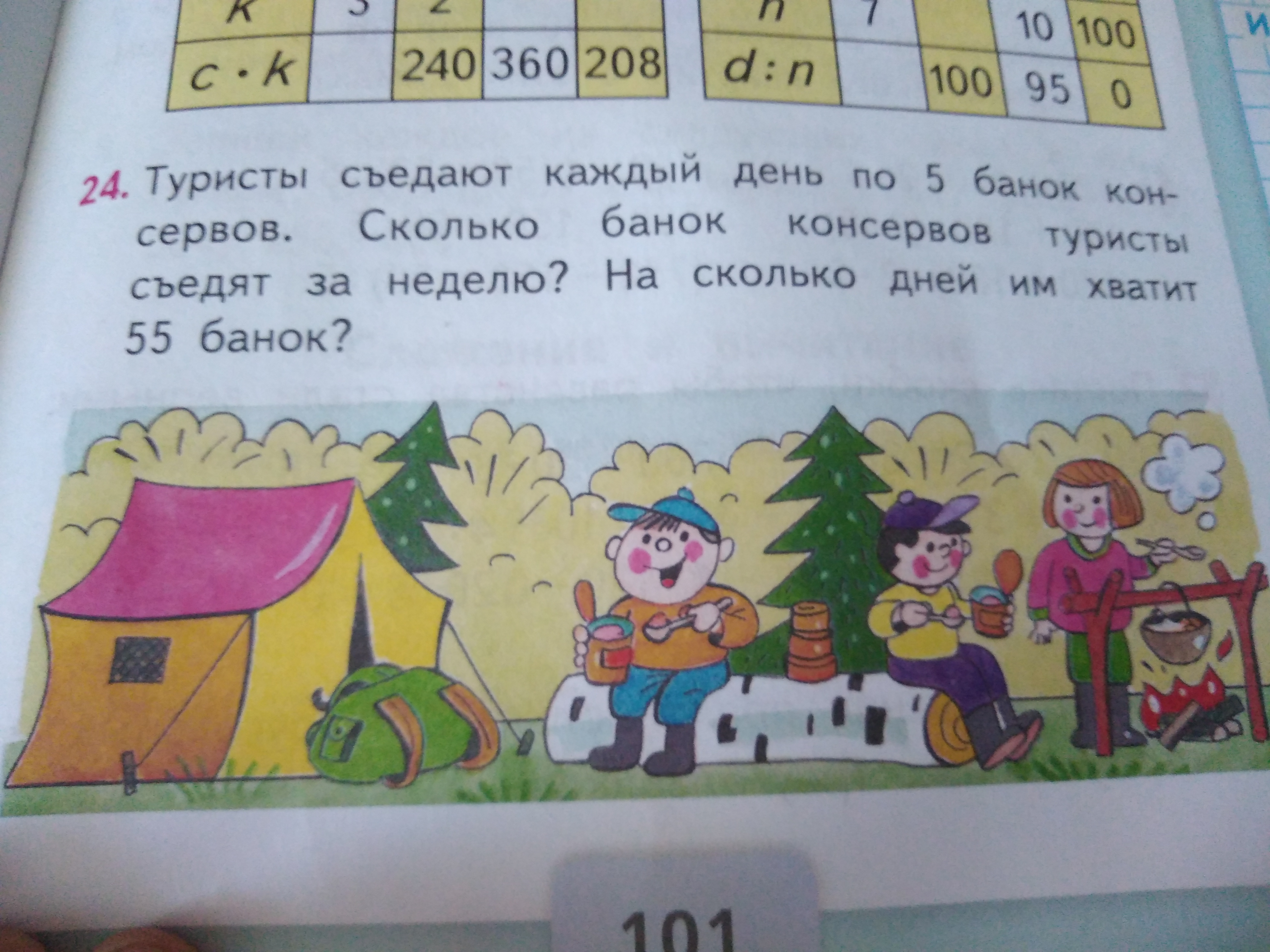 это точно провильное решение 1) 5*7=35 банок за 5 дней 2) 55-35=20 банок 3) 20:5=4 дня .Ответ на дня хватит 4 банки
