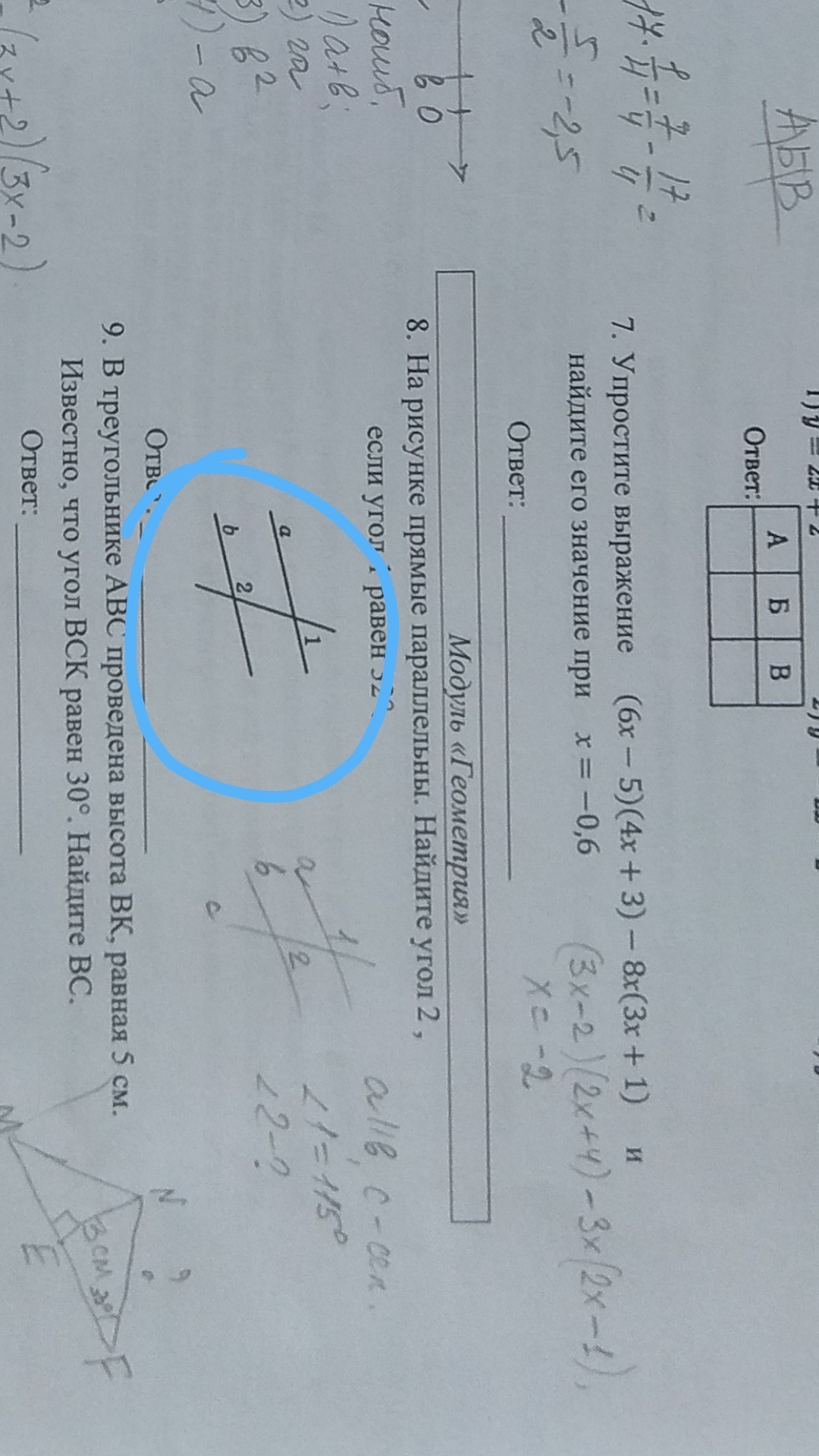 Если угол 1 = 32 градуса, то угол, который будет снизу под углом 1), будет равен тоже 32 градуса. Чтобы найти угол 2, нам нужно из 180 гр. - 32 гр. = 148 гр.