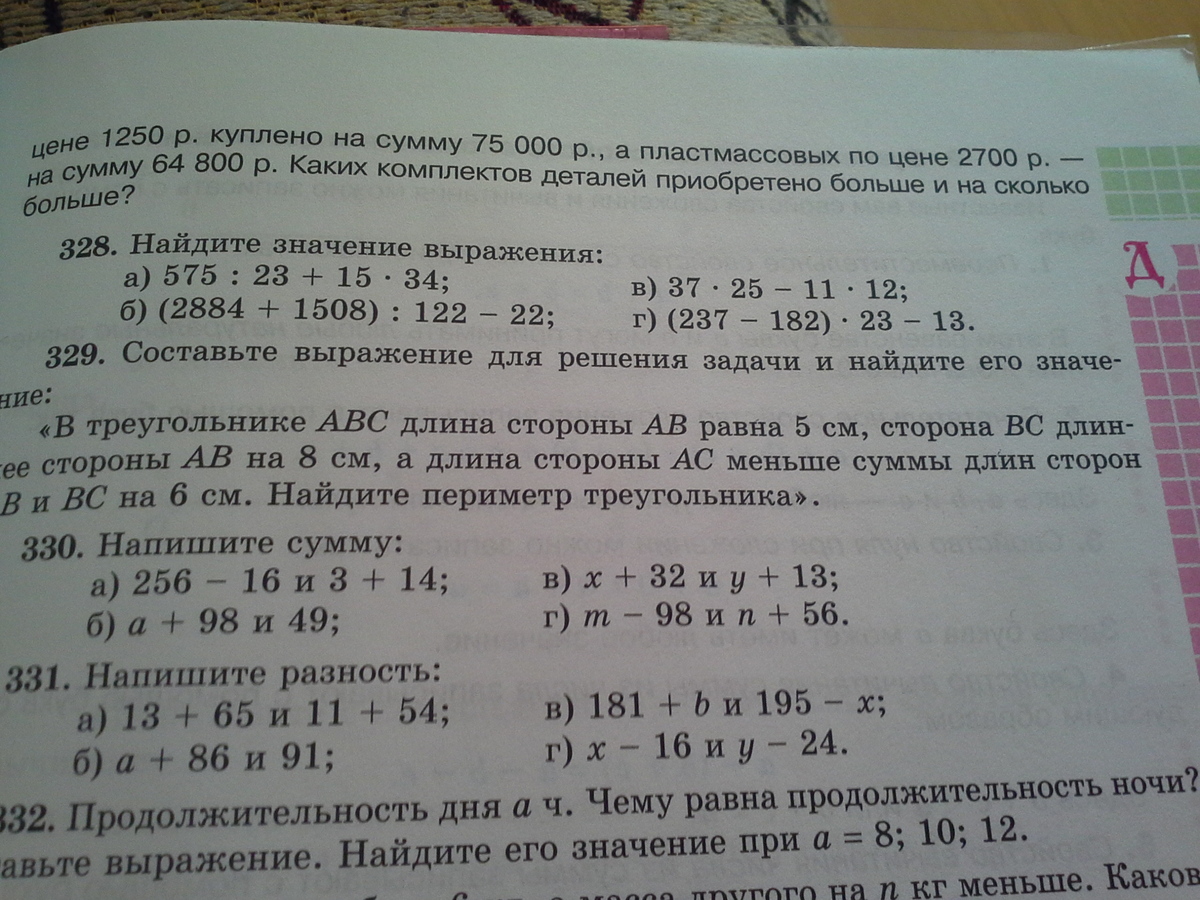 В треугольники ABC длина стороны AB равна 5 см,сторона BC длиннее стороны AB на 8 см,а длинна стороны AC меньше суммы длин сторон AB и BC на 6 см.Найди периметр треугольника.Всех поблагодарю кто составит ВЫРАЖЕНИЕМ!!!Номер 329