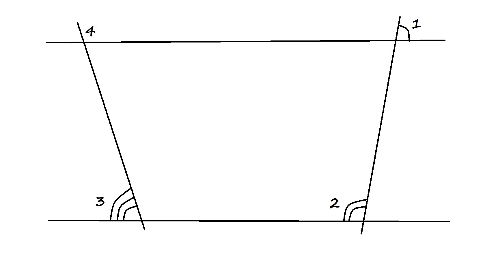 На рисунке угол 1=82 градуса, угол 2=98 градусов, угол 3=65 градусов. Найдите угол 4.