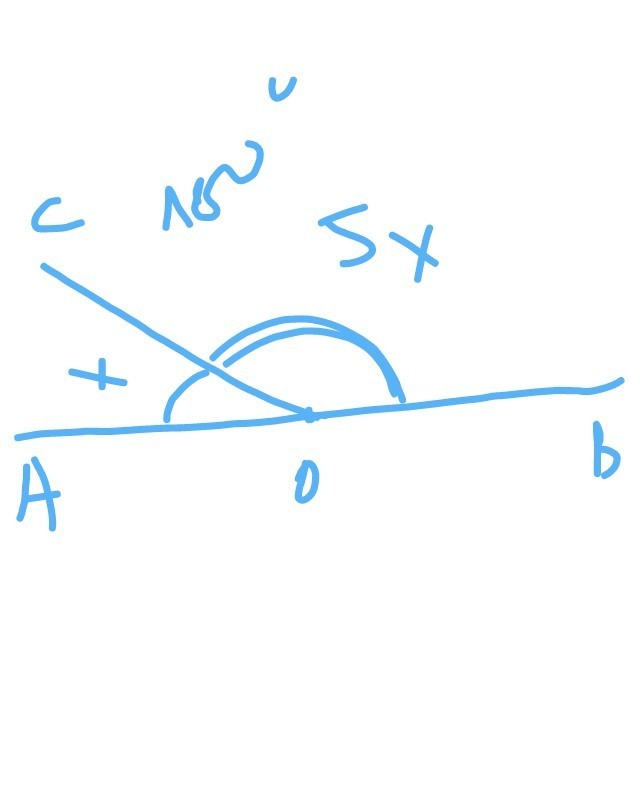 Пусть АОС=х, тогда СОВ=5х(в 5 раз больше АОС)