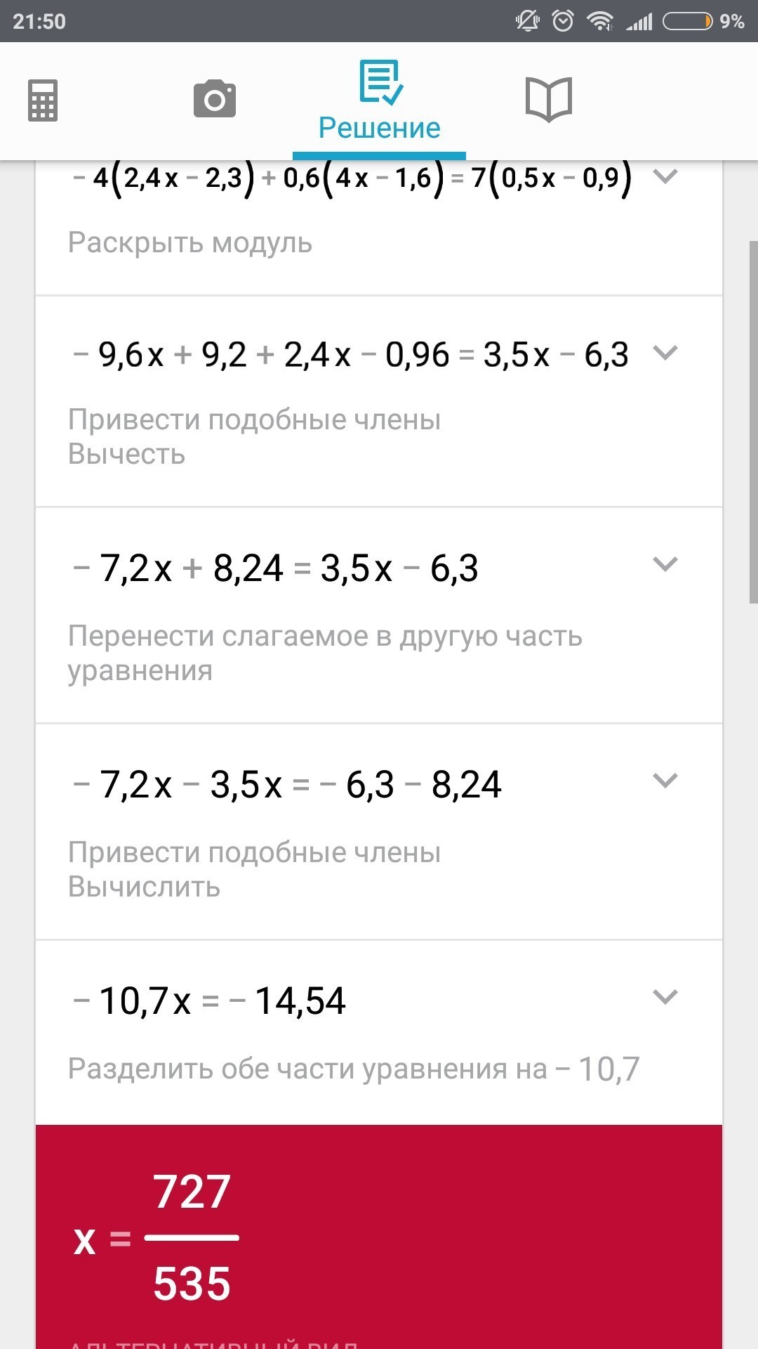 б) -4(2,4x-2,3) +0,6 (4x-1,6)=7(0,5x-09)