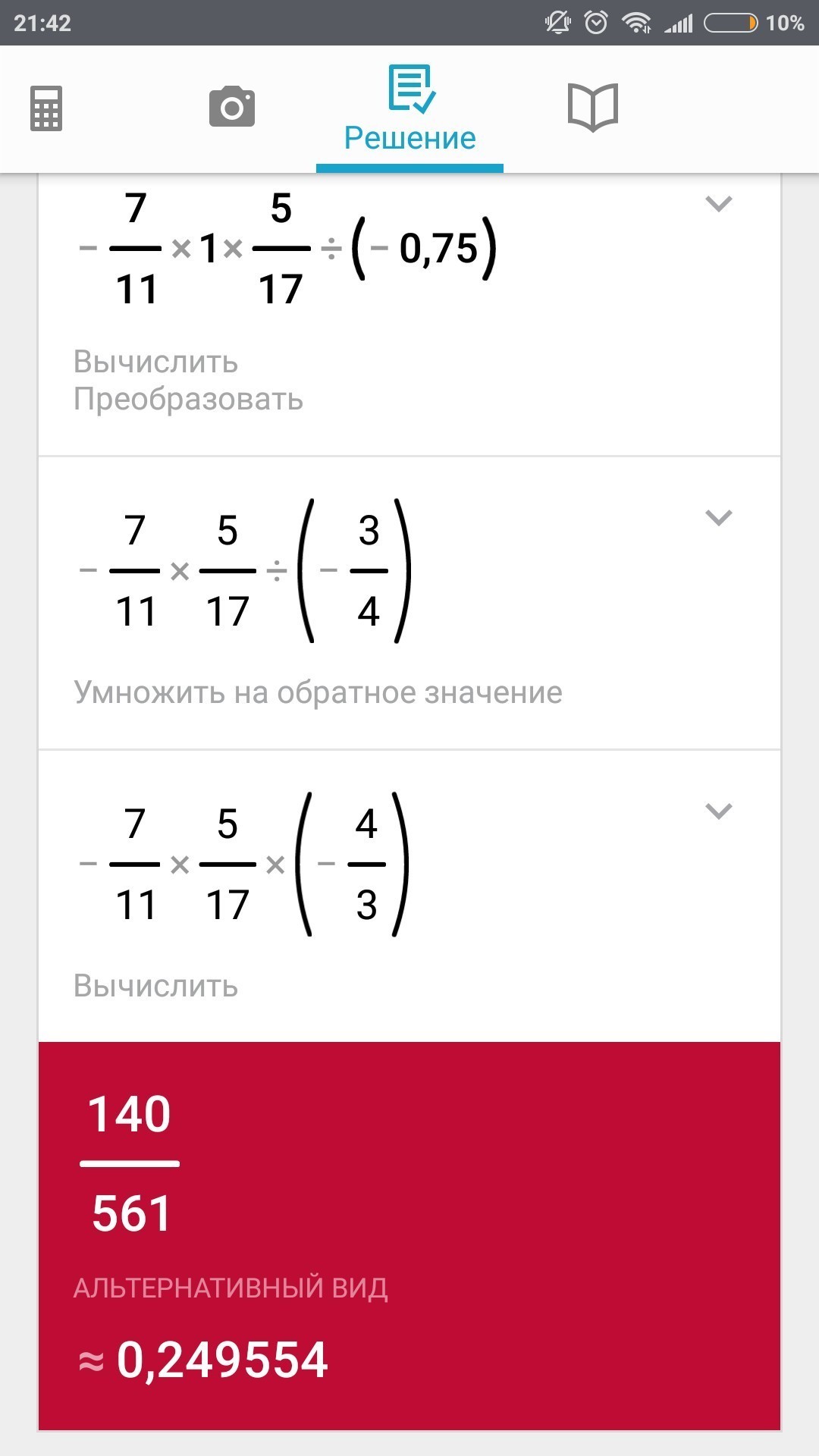 - 7/11 × 1 5/17 ÷ (-0,75)