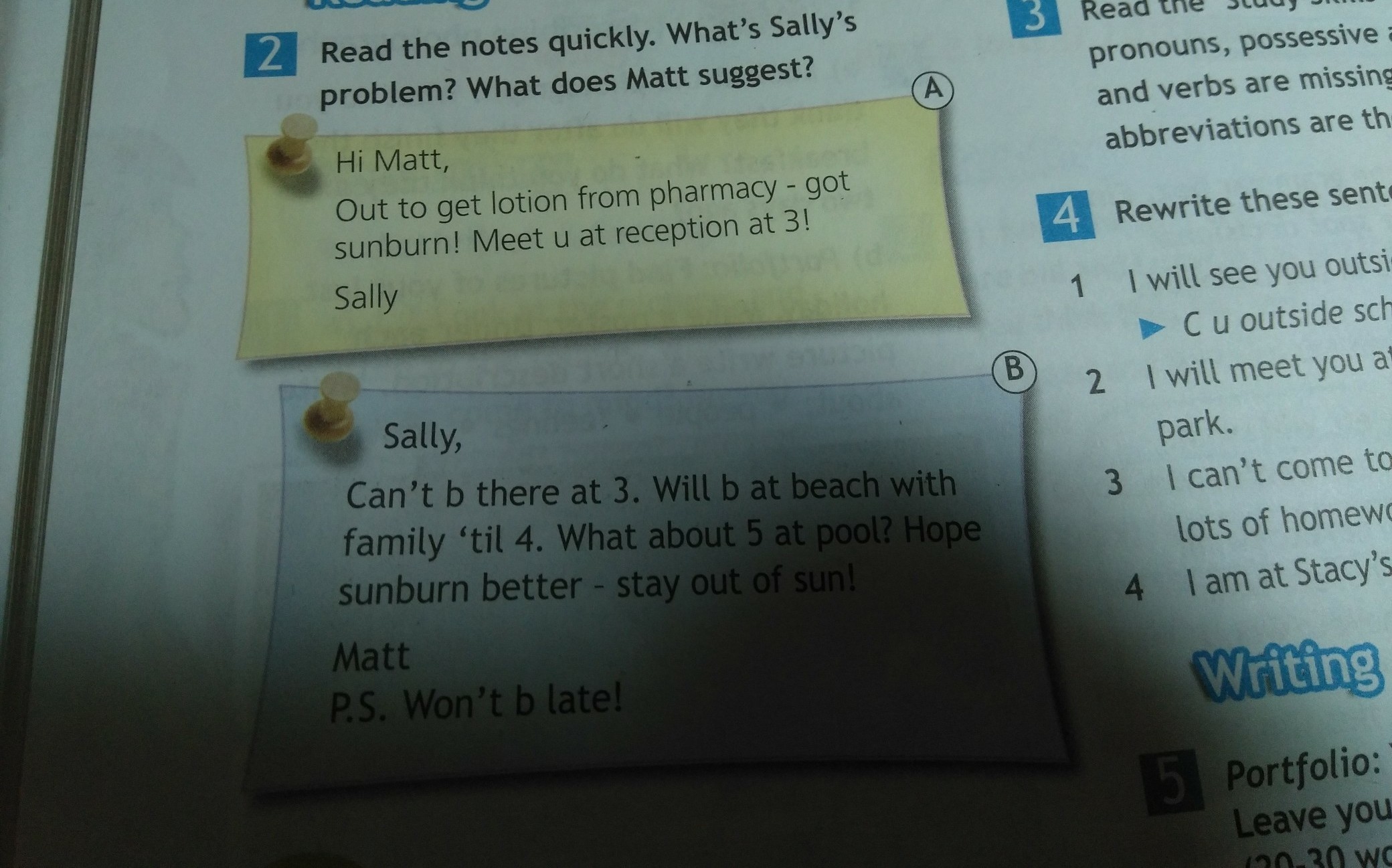 Прочитайте записки быстро. Что за проблема у Салли. Что предлагает Мэтт