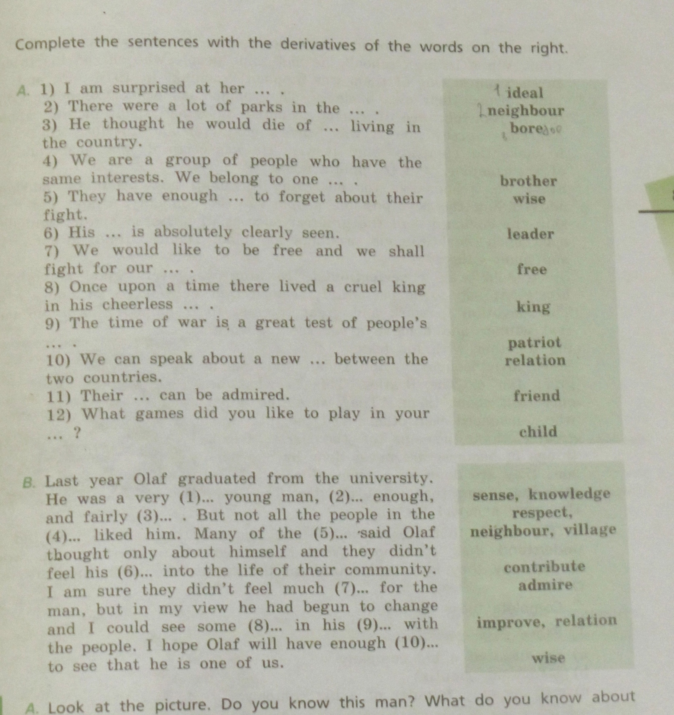 вставьте в предложение производные слова от слов справа.они идут по порядку к каждому предложению.