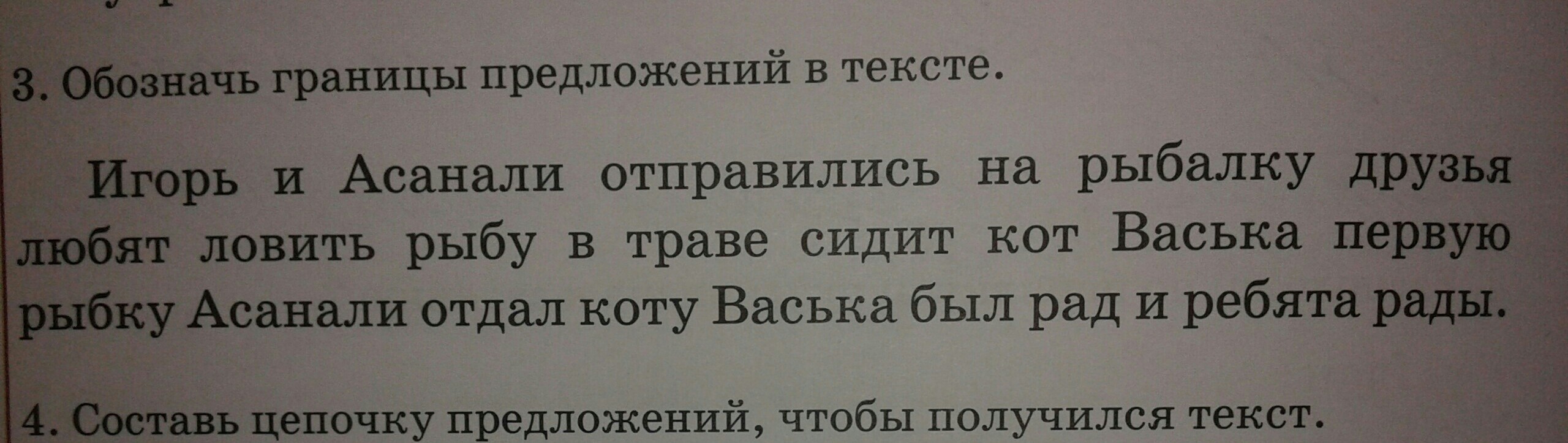 Игорь и Асанали отправились на рыбалку.Друзья любят ловить рыбу.В траве сидит кот Васька.Первую рыбку Асанали отдал коту.Васька был рад,и ребята рады.