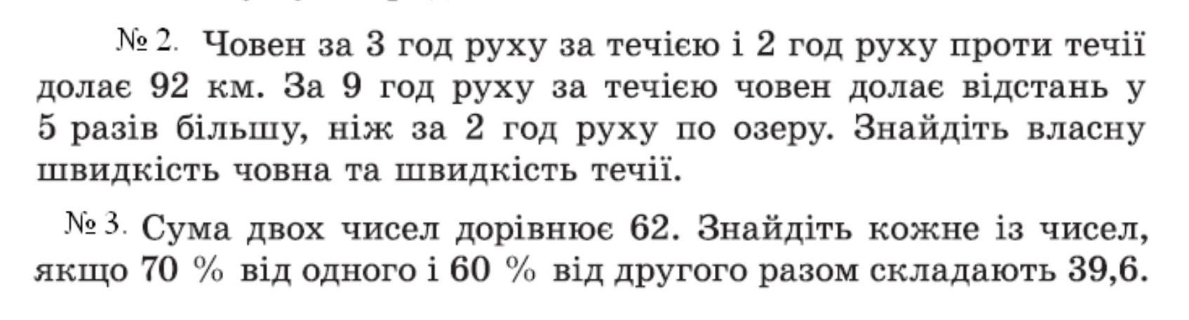 1. Пусть х км/ч - собственная скорость лодки, у км/ч - скорость течения, (х+у) км/ч - скорость по течению, (х-у) км/ч - скорость против, тогда т.к лодка за 3 ч по течению и за 2 ч против преодолевает 92 км, то задача сводится к решению первого уравнения системы:
