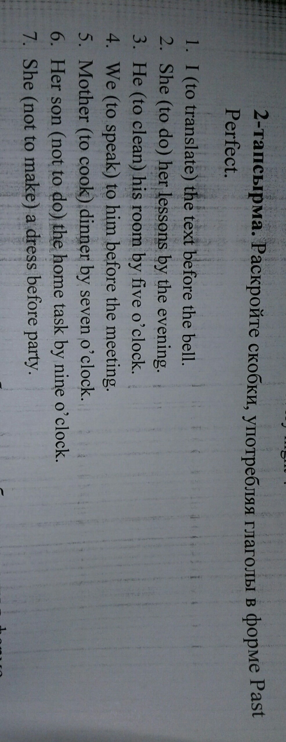 Раскройте скобки , употребляя глаголы в форме Past Perfect