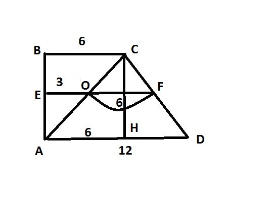 Cредняя линия EF трапеции ABCD состоит из средней линии EO