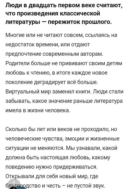 Ребят помогите составить текст не менее 10 предложений на тему ,,зачем надо читать произведения классической литературы"