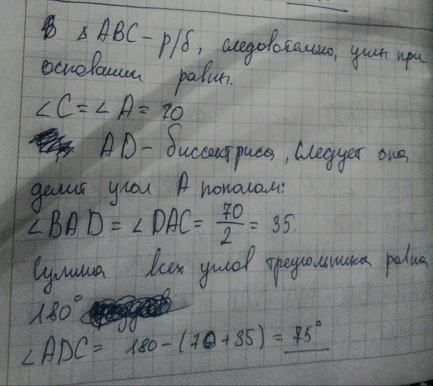 В равнобедренном треугольнике ABC, с основанием AC проведена биссектриса AD.
