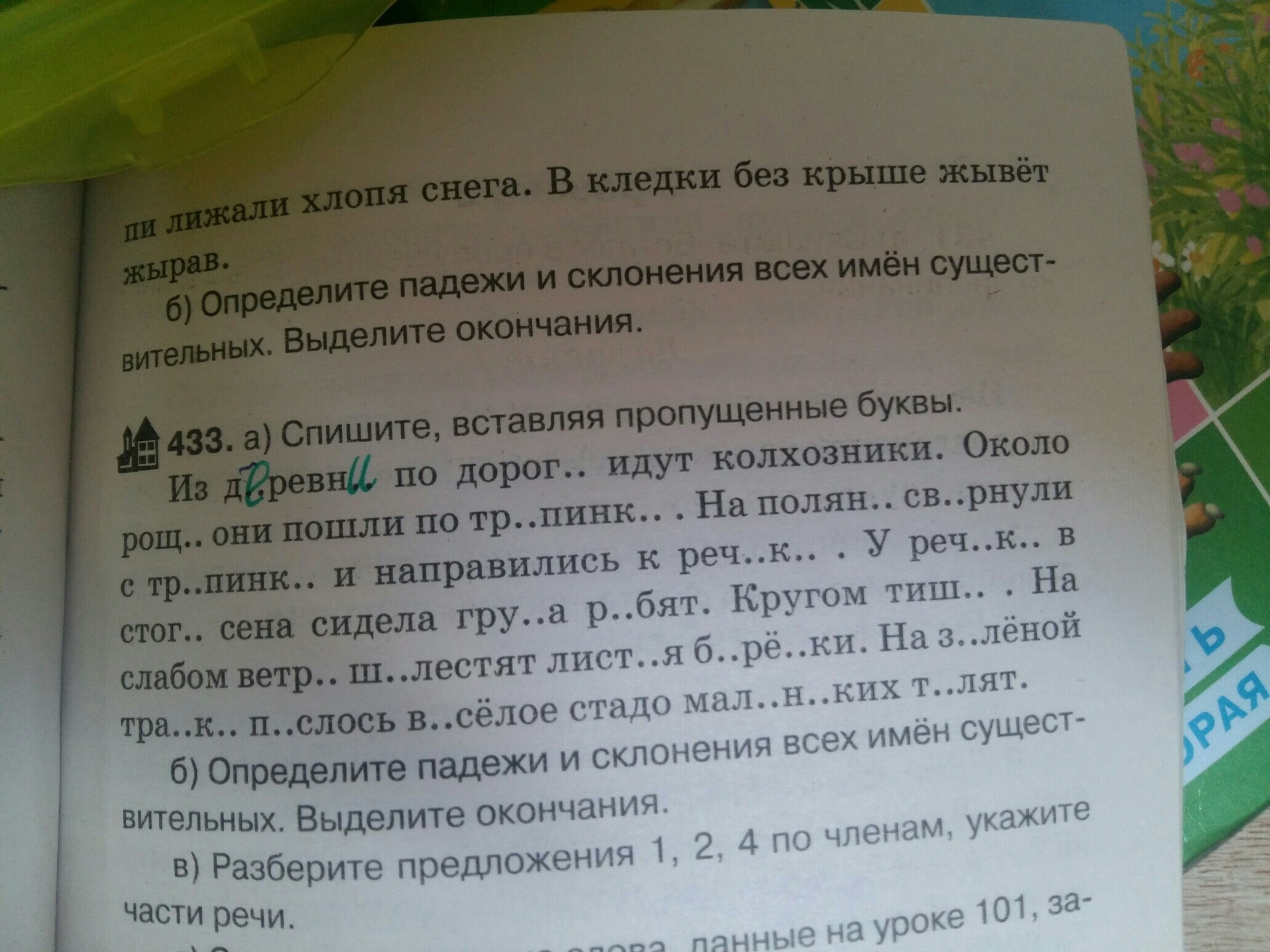 дороге, рощи, тропинке, поляне, свернули, тропинке, речке, у речки,в стоге, ребят.