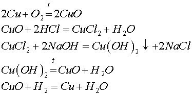 Cu(OH)2 = CuO + H2O (над равно напиши t)