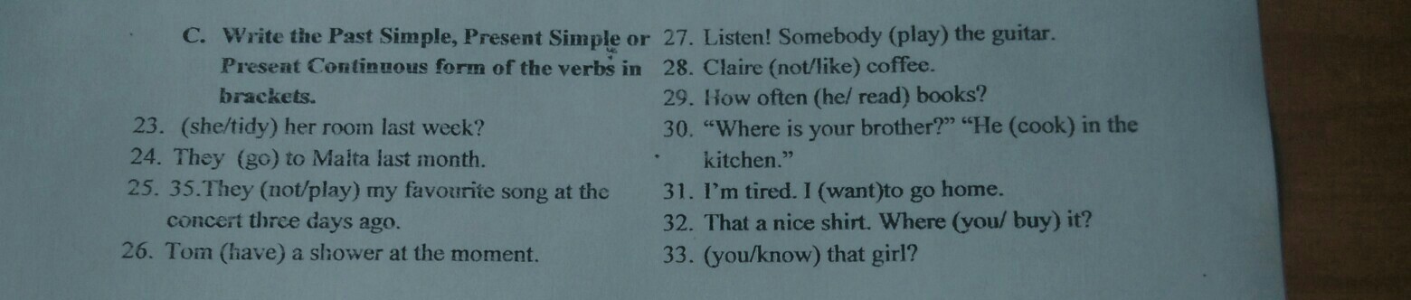 помогите пожалуйста (she/tidy) her room last week. Образовать Past Simple, Present Continius